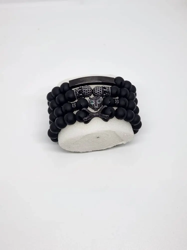 Each bracelet in this 4-piece set is expertly handcrafted with smooth, premium black beads, creating a clean, unified aesthetic that complements any outfit — from casual streetwear to formal attire. The monochrome design gives off strength, confidence, and elegance, making it a must-have accessory for men and women alike.