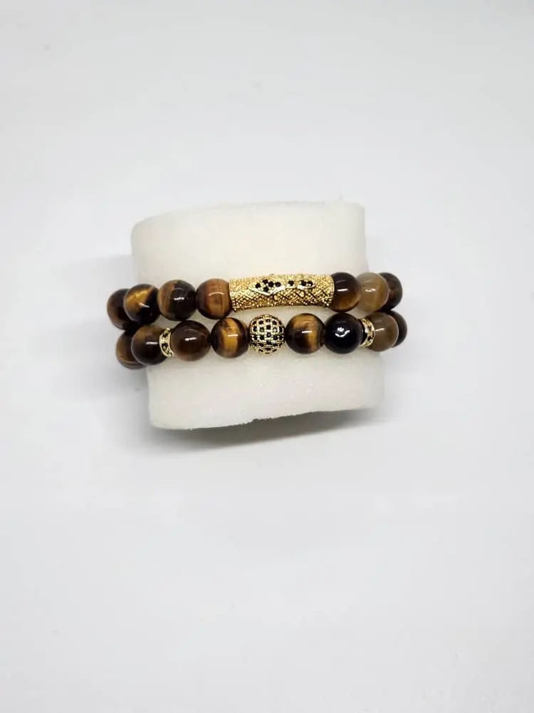 Step into effortless sophistication with the Custom 2-Piece Black-Gold Hand Beads, a striking jewelry set that defines elegance and strength.